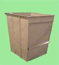 Металлический контейнер для мусора. Размер: 1115х950х745, внутренний размер основания 730х730, внешний размер основания 745х745. Объем 0,85 м. куб. Контейнер с каркасом на усиление и ребрами жесткости, без крышки и колес. Цена за единицу 800 грн. с НДС. Изготовление контейнеров по заданию заказчика.