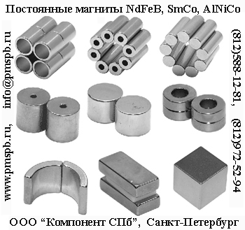 Производство постоянных магнитов по техническому заданию заказчика. Магниты NdFeB (неодим-железо-бор), SmCo (самарий-кобальт), AlNiCo (альнико, ЮНДК), ферритовые магниты. Изготовление магнитных систем на основе постоянных магнитов, а также магнитные крючки, манные крепежи, магнитные фиксаторы, магнитная оснастка, магнитные грузозахваты, магнитный инструмент, магнитный индикатор и многое другое.